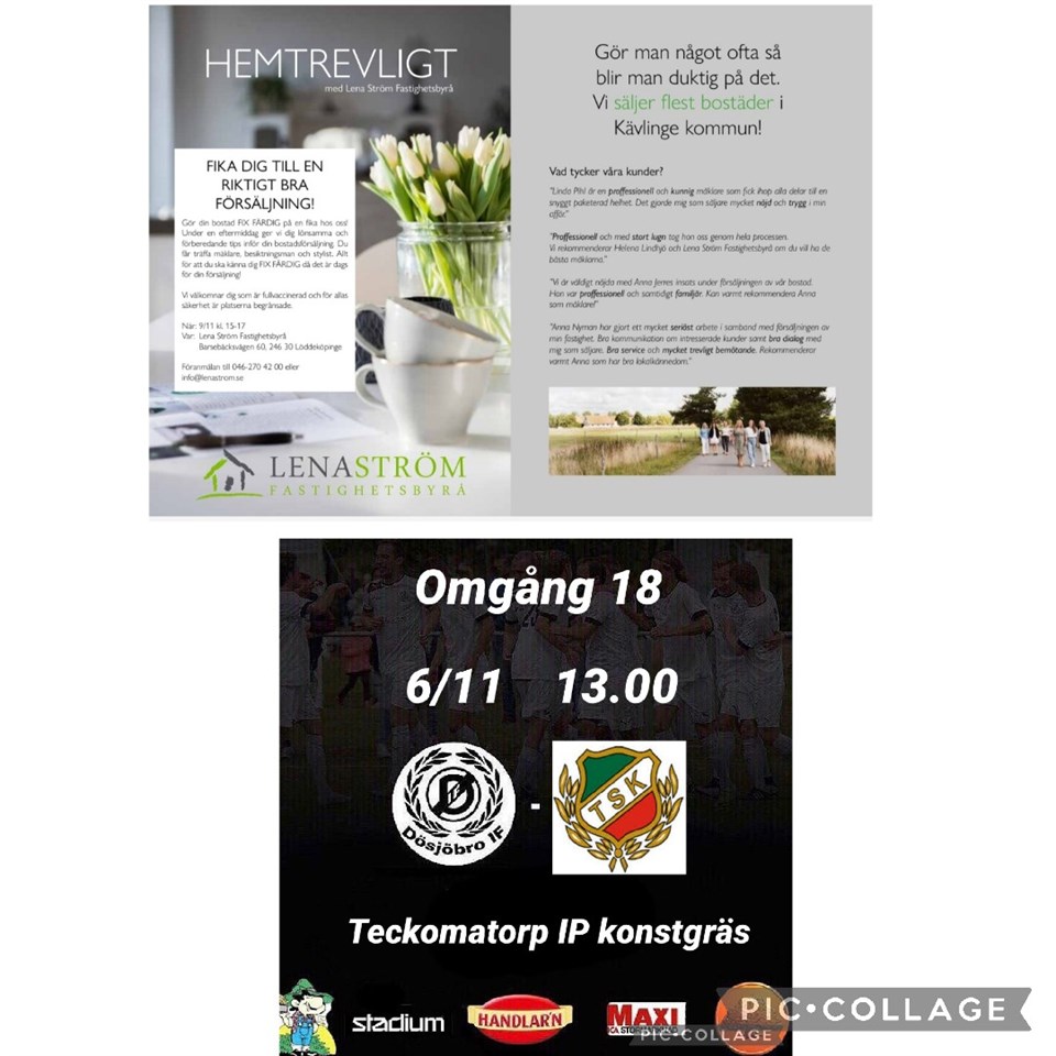 I morgon åker vi till Teckomatorp för den tredje sista matchen för året, och efter vinst i förra veckan så kommer vi med härligt go i laget. Hoppas vi ses på plats. Forza Dösjan 💪💪 En av sponsorer har ett fint höst erbjudande! Seniorlag Herrar 5 nov 2021 0kommentarer