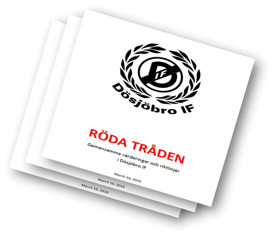 En uppdaterad version av Röda Tråden är på plats! Ett av Dösjöbro IFs viktigaste styrdokument! Dokumentet är endast på 13 sidor och man kan läsa om föreningens visioner, och övergripande riktlinjer, riktlinjer för ungdomsfotboll, seniorfotboll, och vad man ska tänka på som ledare och som vårdnadshavare. Den innehåller även policys kring uppförande och etiska frågeställningar. Är man medlem i föreningen räknar vi med att man förhåller sig till Röda Tråden, vare sig man är ledare, spelare eller vårdnadshavare och alla uppmanas därmed till att läsa och ta till sig informationen i dokumentet. Ni hittar Röda Tråden på vår klubbsida eller på varje lags egen sida under Dokument eller Mer->Dokument. /Styrelsen