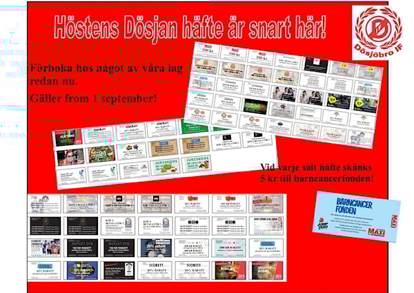 Gör flera goda gärningar, stöd vår förening, handla hos närliggande butiker, många bra erbjudande samt, att det går 5 kr för varje sålt häfte till barncancerfonden.